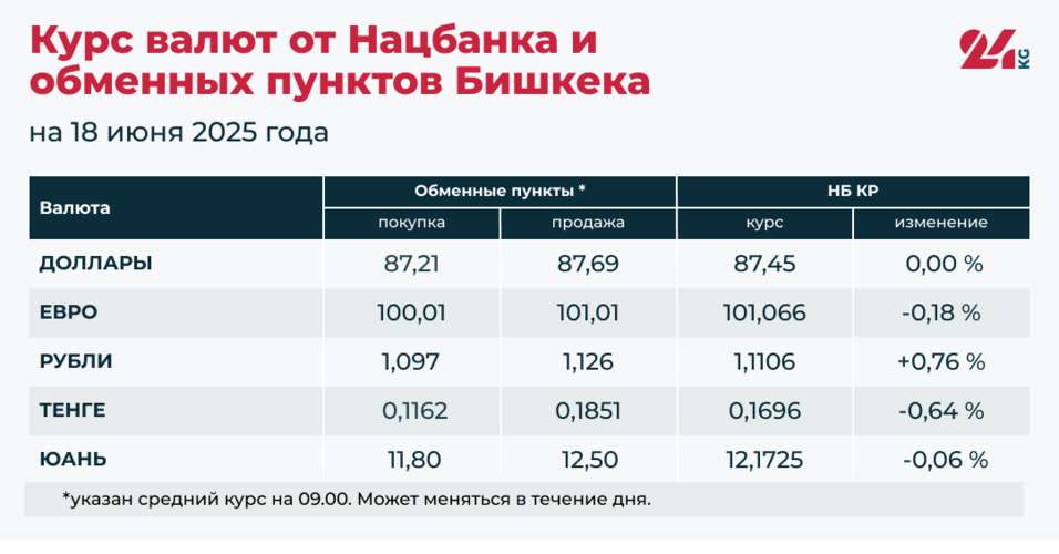 - Официальный курс НБ КР: 87,45 сома (без изменений).
