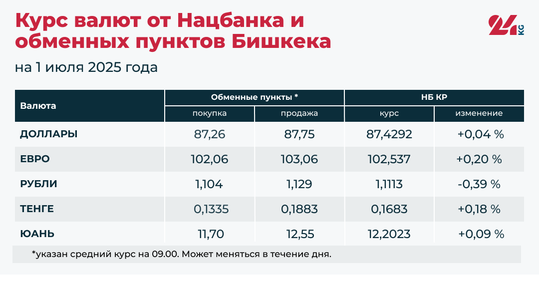 - Официальный курс НБ КР: 87,4292 сома (рост на 0,04 процента).
