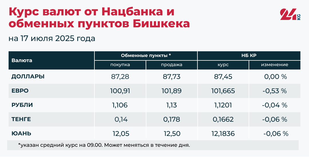 - Официальный курс НБ КР: 87,45 сома (рост 0,01 процента).