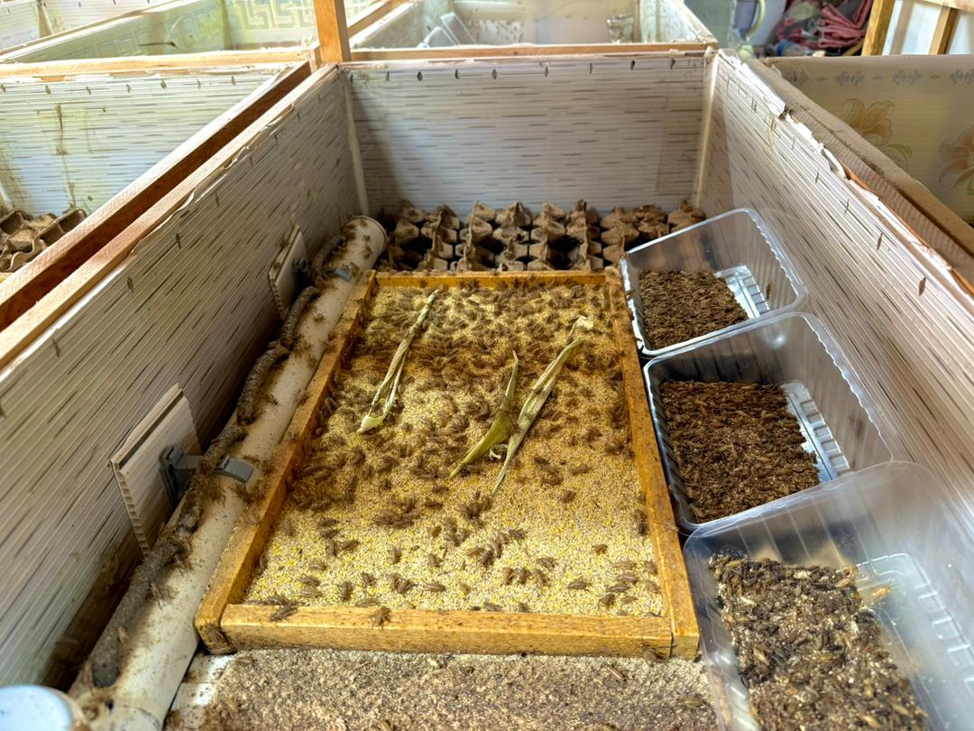 Житель города Бишкек Адыл начал свой небольшой бизнес с разведения кузнечиков. Он занимается этим уже пять лет. Сначала он начал всего с 30 кузнечиков, но за это время сумел найти множество клиентов. В настоящее время он занимается разведением насекомых совместно со своим партнером по бизнесу по имени Кубат.