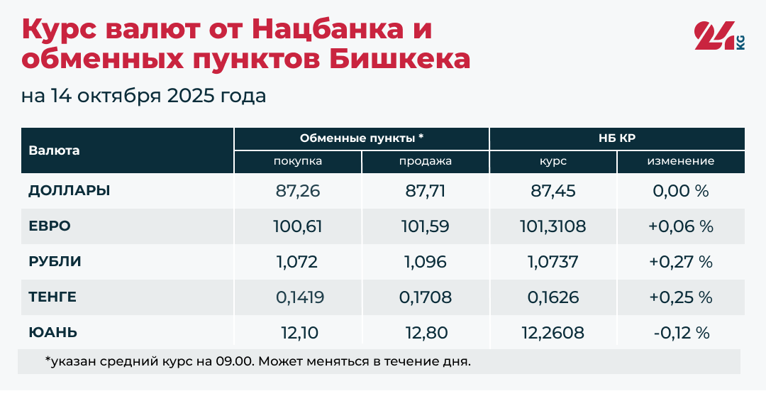 - Официальный курс НБ КР: 87,45 сома (без изменений).