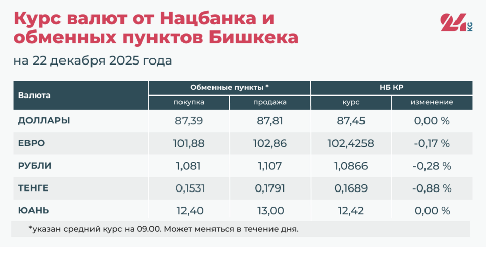 - Официальный курс НБ КР: 87,45 сома (без изменений).