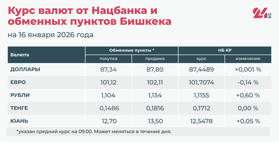• Официальный курс НБ КР: 12,5478 сома (рост на 0,05 процента). Китайская валюта установила третий с начала 2026 года рекорд по стоимости.