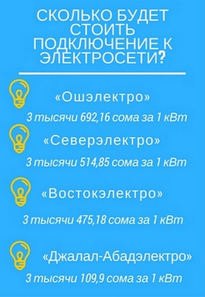 С августа в Кыргызстане подключение к электросетям стало платным. С инициативой выступил Национальный энергохолдинг, а реализовало задуманное Государственное агентство по регулированию топливно-энергетического комплекса, утвердив базовые тарифы.