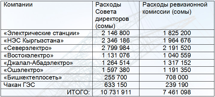 На содержание совета директоров одной распределительной компании тратится 1,5-3 миллиона сомов ежегодно. Каждый член СД получает 20-30 тысяч сомов ежемесячно, вне зависимости, собирались ли советы на заседания.