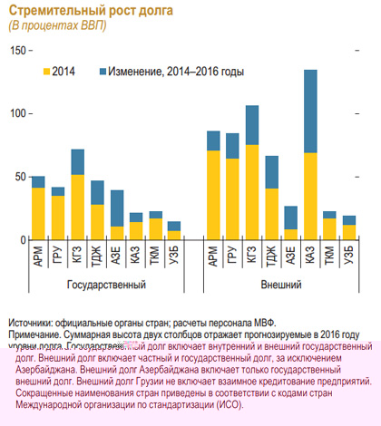 Начиная с 2014 года страны-экспортеры нефти потратили примерно $20 миллиардов из своих сбережений (эквивалентно почти 6 процентам их ВВП в 2015 году) на финансирование дефицита бюджета. При этом рост государственного долга во многих странах-экспортерах и импортерах достиг двузначных показателей, хотя и продолжает большей частью оставаться умеренным.