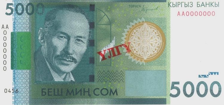 The issue of new banknotes completes the scheduled update of the national currency of the 4th series. The new banknotes have a clearly defined portrait made by the classical method with mask element (the word «som» appears on the banknote of 5,000 soms when holding it up to light) and the year of issue — 2016.