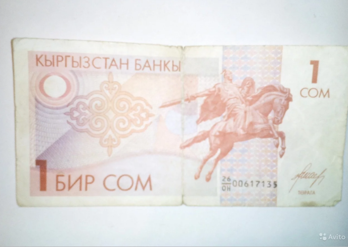Banknote of 1 Kyrgyz som from a batch of bills from the transition period was put up for sale in Russia. An offer for sale was posted on Avito.ru.