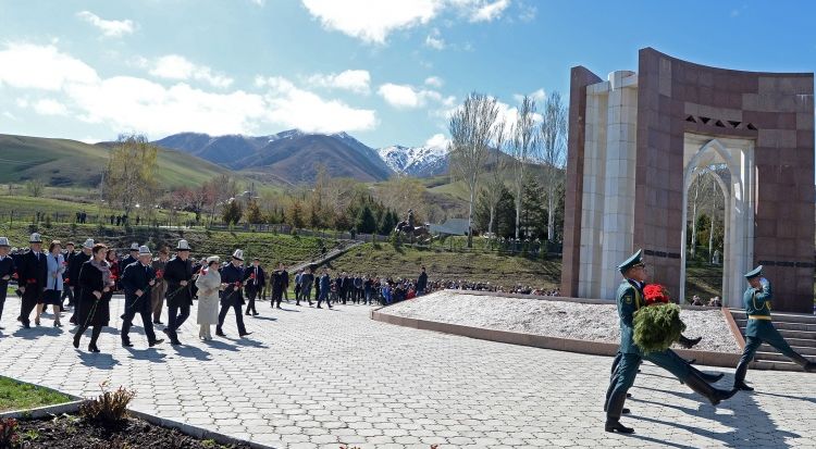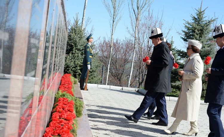 The head of state laid flowers at the monument to those killed in the April 2010 events at Ata-Beyit memorial complex. The ceremony began with a moment of silence. A memorial prayer was read then.