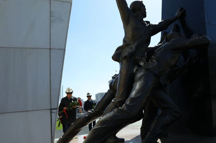 President of Kyrgyzstan lays flowers at monument to killed on April 7
