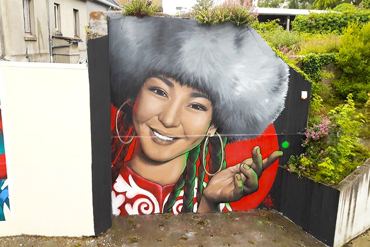 A large graffiti depicting a girl in Kyrgyz national dress appeared in Saint-Brieuc town of France. Basicolors art group reported.