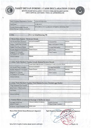 Saimaiti showed reporters 48 cash declarations. At least 31 of them were filled out by couriers who worked for Saimaiti during his cooperation with the Abdukadyrs. According to these declarations, couriers have brought to Istanbul more than $ 27 million for two months — in September and October 2016.