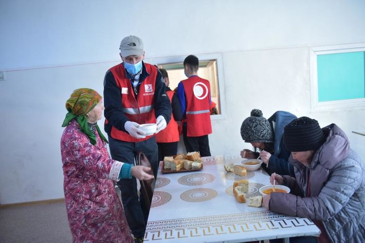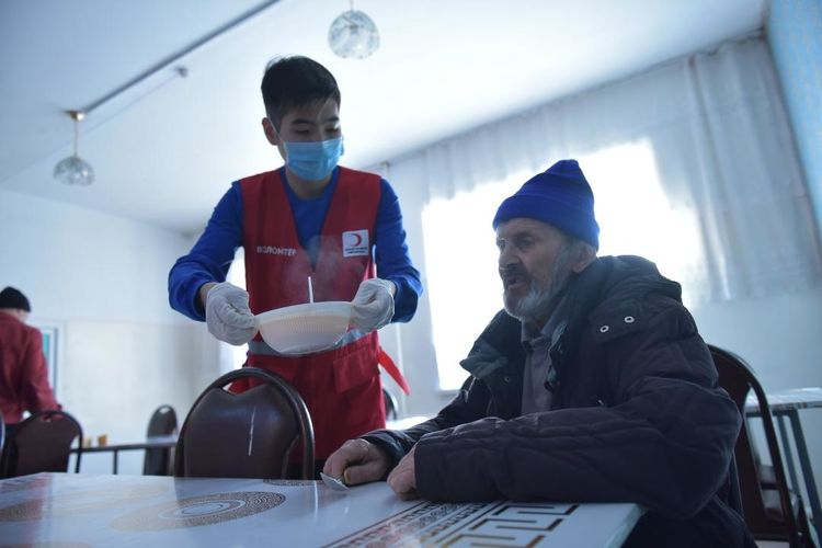 Ambassador of the United Kingdom to Kyrgyzstan Charles Garrett, together with Red Crescent volunteers and the Social Development Department of Bishkek City Hall, fed the homeless at Kolomto municipal center with hot pea soup.