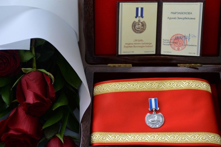 President of Kyrgyzstan Sooronbai Jeenbekov presented the parents of Adinai Myrzabekova with Erdik medal, which the student-volunteer was awarded posthumously. The Information Policy Department of the Presidential Administration reported.