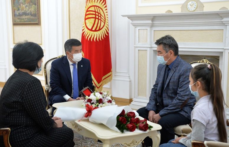 The president met with the parents of the volunteer, student of the Kyrgyz State Medical Academy, Adinai Myrzabekova, who died untimely while providing assistance to hospital patients.