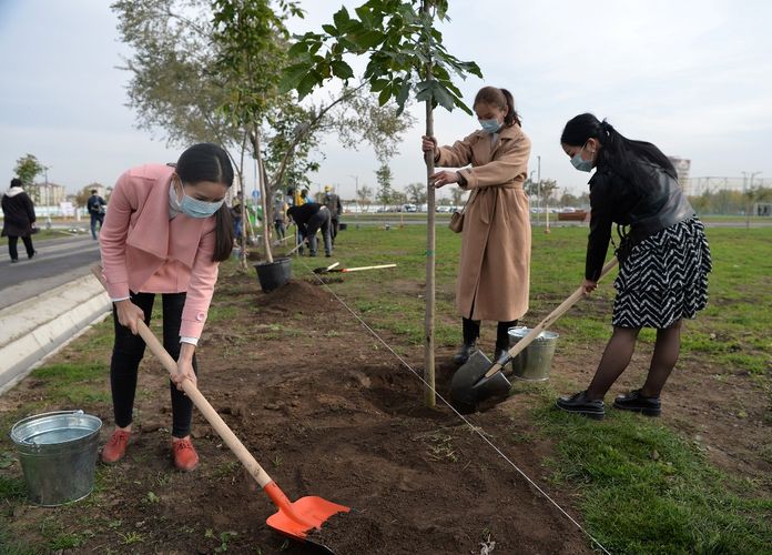 The head of state Sooronbai Jeenbekov, relatives and classmates of Adinai Myrzabekova, as well as medical workers, law enforcement officers and other active participants of the fight against the pandemic visited the park today. They honored the memory of the Kyrgyzstanis — victims of COVID-19 and planted trees.