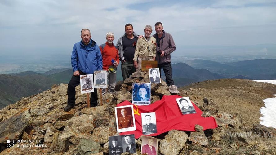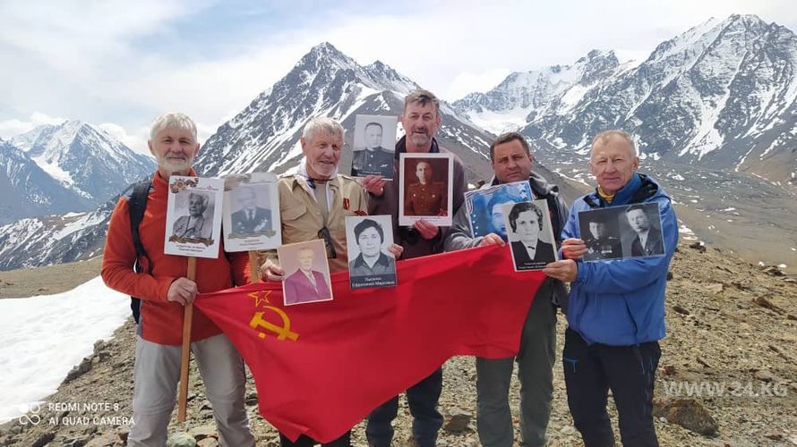 A group of veteran climbers, enthusiasts of Immortal Regiment march climbed the 3,300 meters high peak of Leonid Dyadyuchenko. Sister of one of the participants informed 24-kg.com news agency.