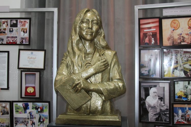 A monument to student Adinai Myrzabekova, who died last year while working as a volunteer in one of the hospitals in Bishkek, was unveiled at the Kyrgyz State Medical Academy (KSMA). Press service of the academy reported.