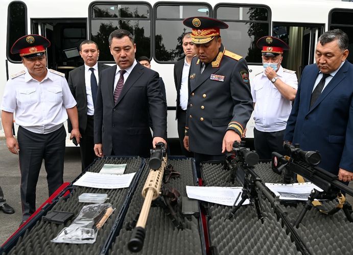 Sadyr Japarov was shown the modernized center of the press service of the Ministry of Internal Affairs and the equipment of the patrol police: weapons, portable radio stations and other special equipment. «Models of new uniforms for district police inspectors in their summer, winter, autumn-spring and everyday variants were demonstrated,» the press service noted.