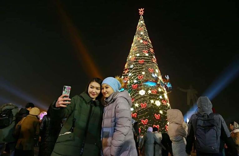 New Year tree lit up on central square of Osh city