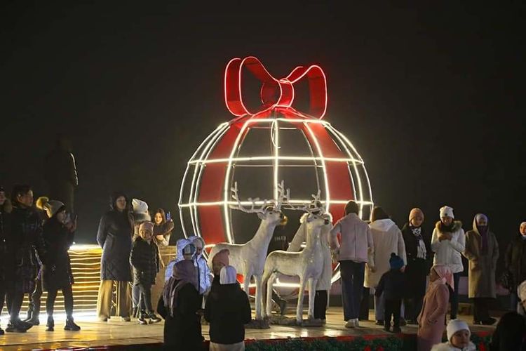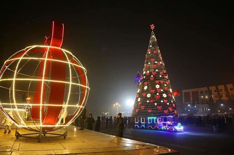 A New Year tree was lit up on the central square of Osh city. Press service of the City Hall of Osh reported.