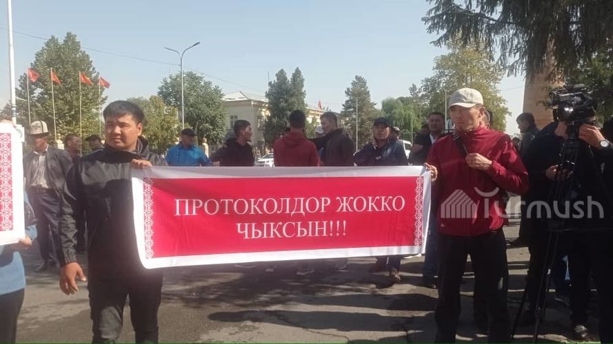 Dozens of citizens who are standing outside demand an open meeting with the head of state and provision of complete information on Kempir-Abad reservoir.