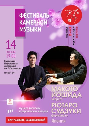 Musicians from Japan will perform on the stage of the Toktogul Satylganov Kyrgyz National Philharmonic Hall — the duet of Makoto Yoshida (clarinet) and Ryutaro Suzuki (piano), Forte Trio from Kazakhstan. Kyrgyzstan will be represented by a quartet led by Ernis Asanaliev.