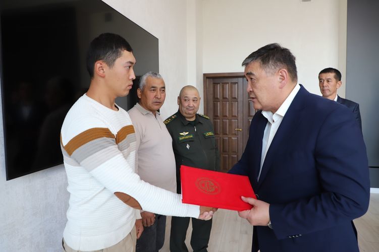 Chairman of the State Committee for National Security of Kyrgyzstan Kamchybek Tashiev handed over the keys to a two-room apartment in Bishkek to border guard Tairbek Inkhamov, who was wounded during clashes on September 16, 2022 on the Kyrgyz-Tajik state border. The press center of the state committee reported.