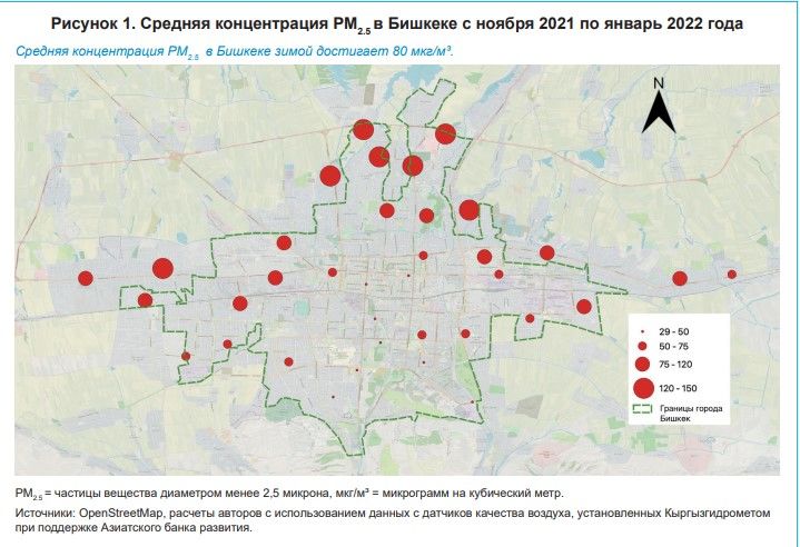 «Average annual PM2.5 concentrations in the city are about 30 micrograms per cubic meter (µg/m³), and in winter they reach 80 µg/m³, with even 150 µg/m³ in one area in the north of the capital. The WHO recommended limit value for the annual average concentration of PM2.5 is 5 µg/m³,» the document says.