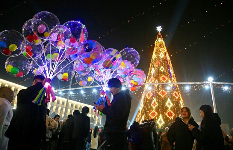 The New Year tree was lit up on the central square of Osh city. The press service of the City Hall of the southern capital of Kyrgyzstan reported.
