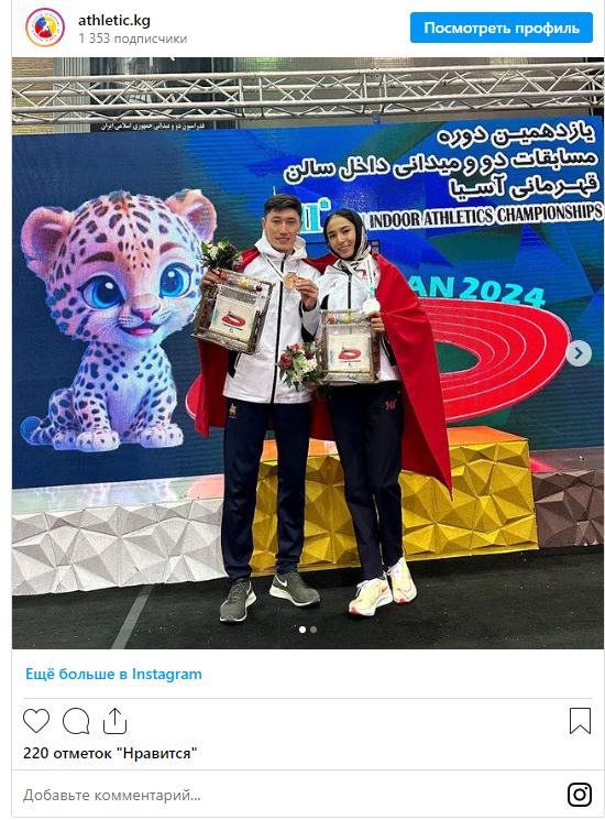 Nursultan Keneshbekov won a gold medal at the Asian Indoor Athletics Championships, which takes place in Tehran (Iran). The Athletics Federation of the Kyrgyz Republic posted on social media.