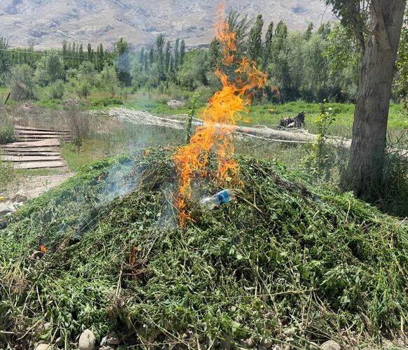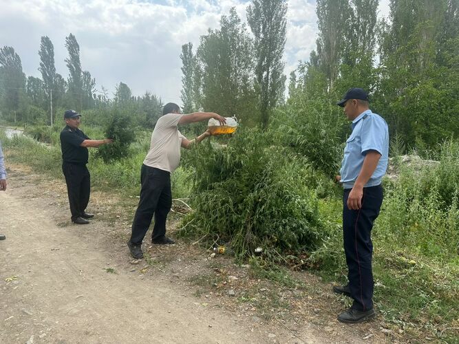 Wild hemp is being destroyed in Batken region of Kyrgyzstan. The press service of the Internal Affairs Department of the region reports.