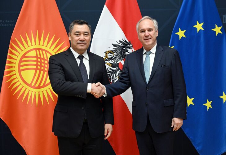 Concluding the official visit, the President of the Kyrgyz Republic held a meeting with President of the National Council of Austria Walter Rosenkranz. During the talks, the parties exchanged views on current issues of mutual interest, with a particular emphasis on the development of interparliamentary relations.