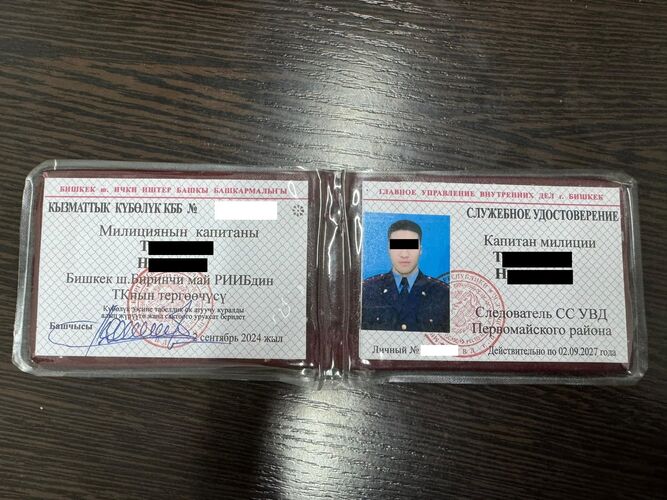 Employees of the security services and the Internal Investigations Service of the Ministry of Internal Affairs detained an investigator of the Department of Internal Affairs of Pervomaisky district, police captain T.N. The press center of the State Committee for National Security of Kyrgyzstan (SCNS) reported.