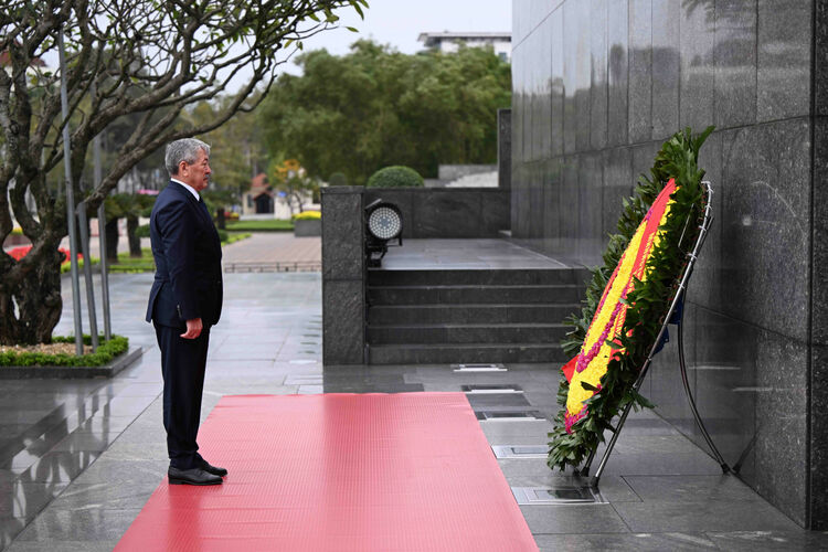 During the visit to the mausoleum, Adylbek Kasymaliev was accompanied by the Minister of Industry and Trade of Vietnam Nguyen Hong Dien.