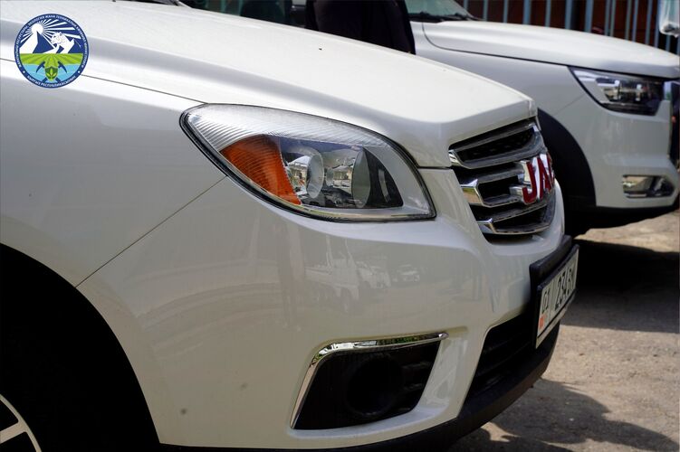 A total of nine vehicles were handed over — four JAC T8 pickup trucks and five CHEVROLET LABO 7T12.