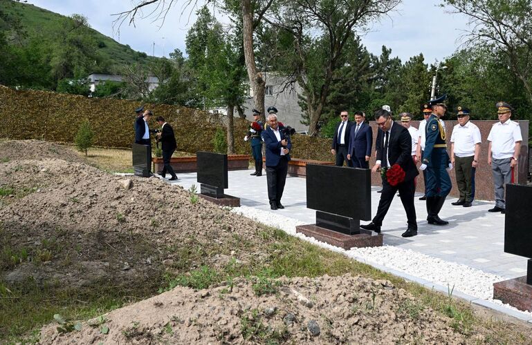 President of Kyrgyzstan Sadyr Japarov today took part in the opening ceremony of a monument to servicemen who died defending the state border at the Ata-Beyit National Historical and Memorial Complex.