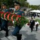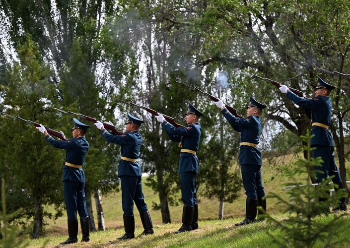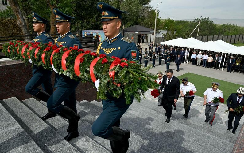 The servicemen removed the canvas from the monument, after which the National Anthem of the Kyrgyz Republic was performed. After laying flowers at the memorial, the participants honored the memory of the dead with a minute of silence. Then a three-volley rifle salute was fired.