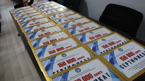 The Minister of Labor, Social Security and Migration of Kyrgyzstan, Ravshanbek Sabirov, presented the first certificates for 150,000 soms each to participants of the Social Contract program in Kochkor district.