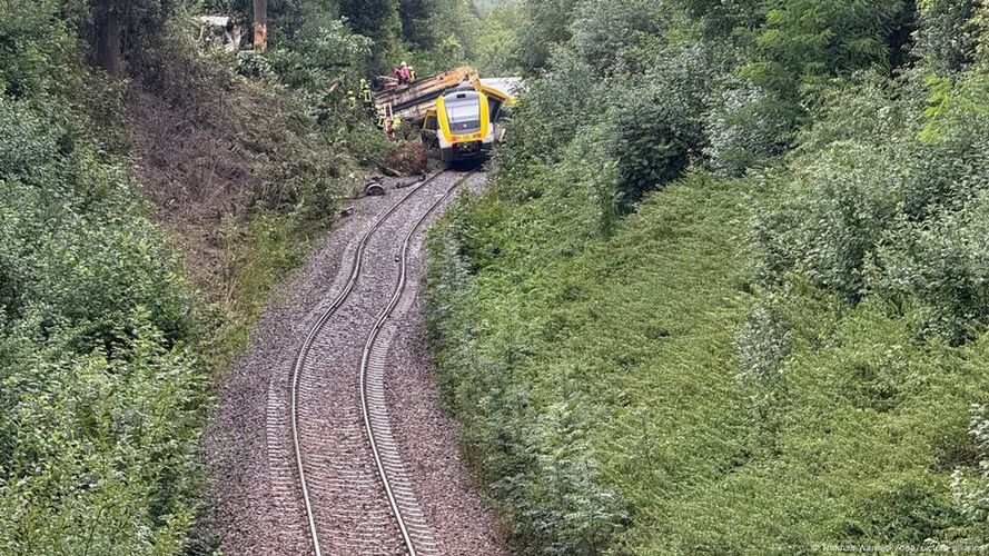The front part of the train derailed to the left. The carriages then flew about 5 meters up the slope and crashed into trees.