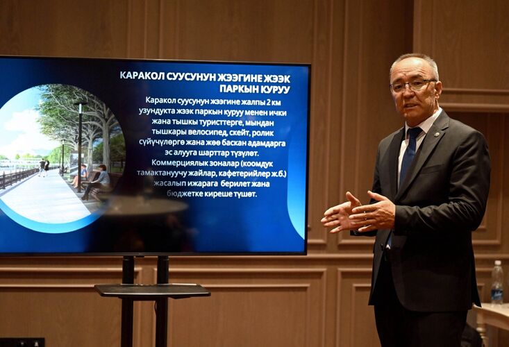 The mayor of the city Kanybek Adiev told Sadyr Japarov that a 2-kilometer-long embankment park is planned to be built along the Karakol River. It will create comfortable conditions for pedestrians, cyclists and outdoor enthusiasts.