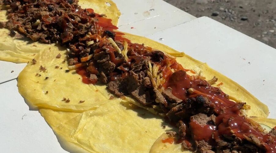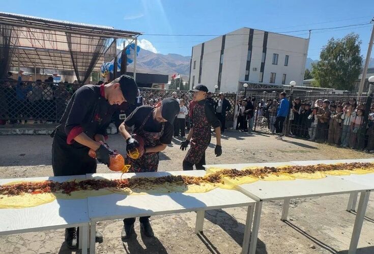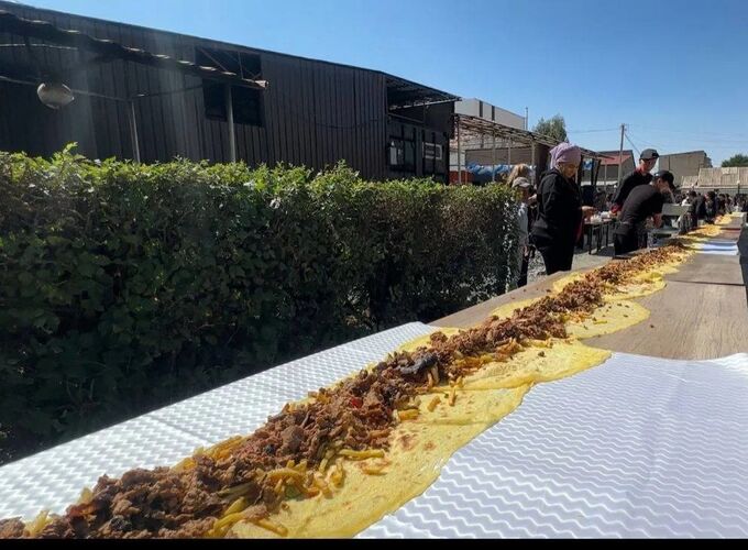 A local cafe in Naryn celebrated its birthday in a way that has the whole city talking. To celebrate its second anniversary, the establishment decided to surprise its guests by preparing a giant shawarma measuring 30 meters in length.