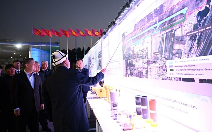 Sadyr Japarov was then shown the completed repair work on the runway.
