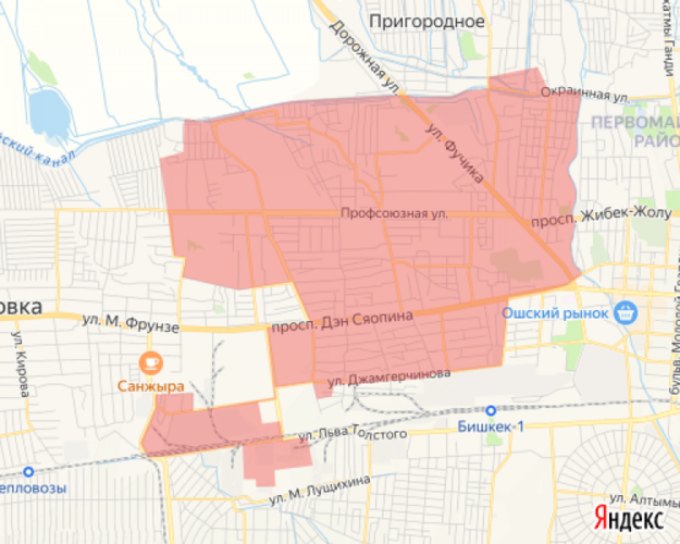 • Voenny Gorodok and Kyzyl-Asker residential complexes, 110th Quarter, and Dostuk microdistrict.