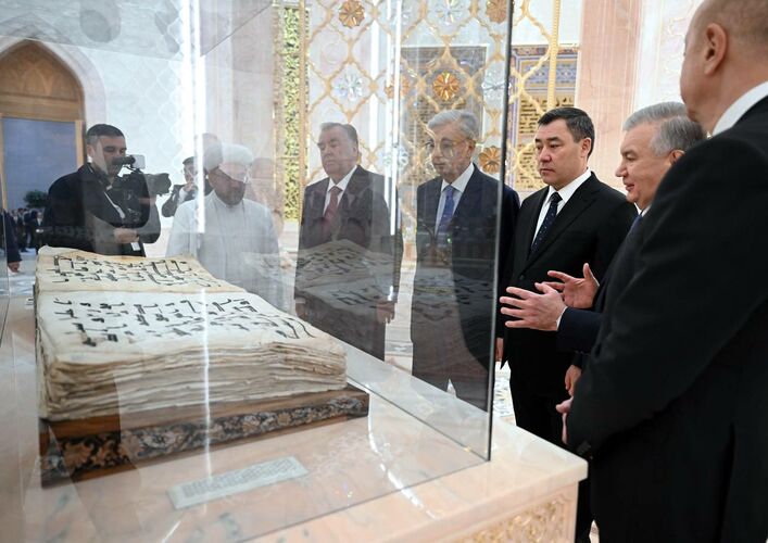 Along with the leaders of Azerbaijan, Kazakhstan, and Tajikistan, Sadyr Japarov toured the Hall of the Holy Quran, which houses the Mushaf Uthman, one of the oldest and most revered manuscripts in the Islamic world.