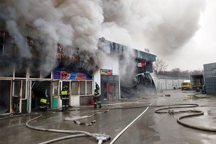 A fire broke out at Aziz market on Gandhi Street in Pervomaysky district of the capital. The press service of the Ministry of Emergency Situations of Kyrgyzstan reported.