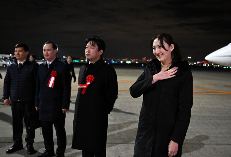 The presidential aircraft landed at Tokyo’s Haneda International Airport, where the national flags of the Central Asian countries were displayed and a red carpet was laid out.