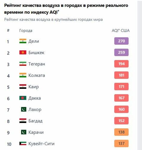 As of 5:45 p.m., Bishkek ranked second in the World Air Quality rating of the world’s largest cities.