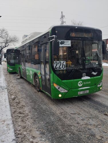 A traffic accident involving two buses occurred at the intersection of Baitik Baatyr and Mederov Streets in Bishkek. Eyewitnesses reported the road accident.