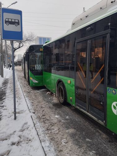 Buses collide at intersection of Baitik Baatyr and Mederov Streets in Bishkek